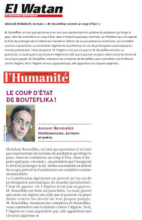 M. Bouteflika commet un coup d’Etat! (El Watan 13 mars 2019; L’Humanité 14 mars 2019)